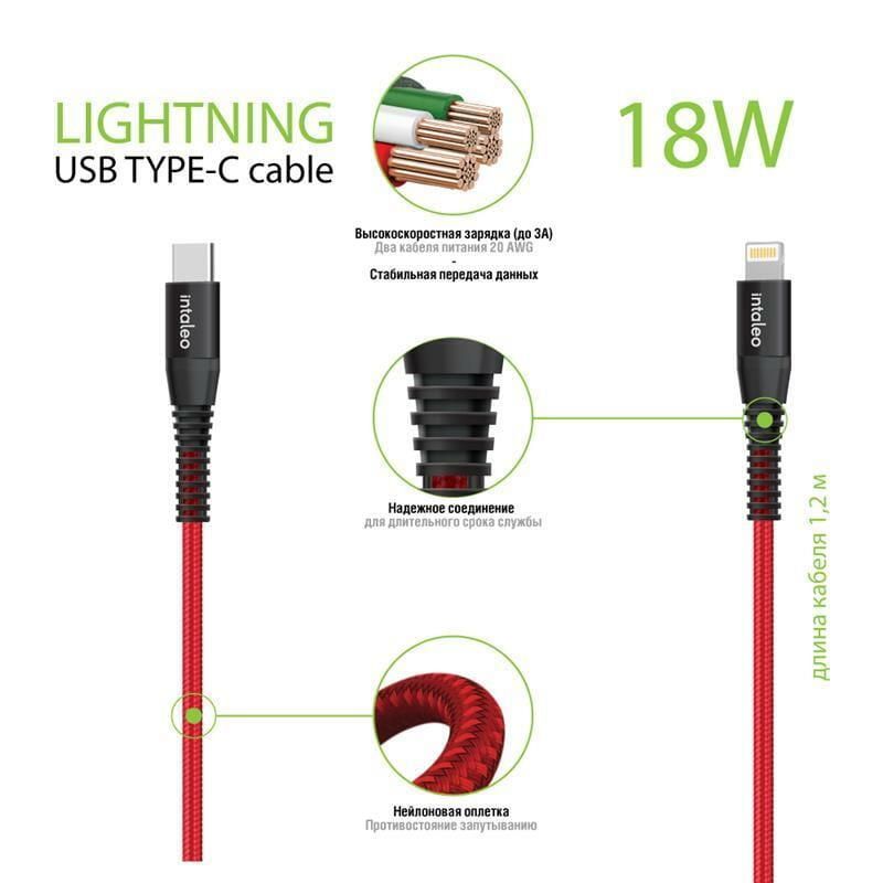 Кабель Intaleo CBRNYTL1 USB Type-C - Lightning (M/M), 1.2 м, Red (1283126504129)