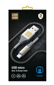Кабель Luxe Cube Armored USB - microUSB (M/M), 1 м, сірий (8886668686105)