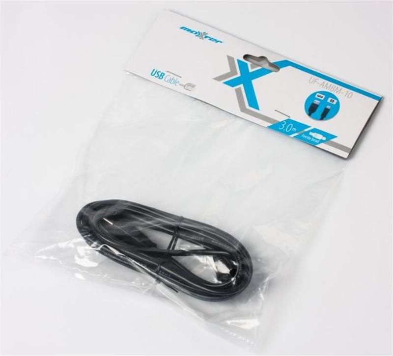 Кабель Maxxter USB - USB Type-B V 2.0 (M/M), 3 м, феритовий фільтр, Black (UF-AMBM-10) пакет