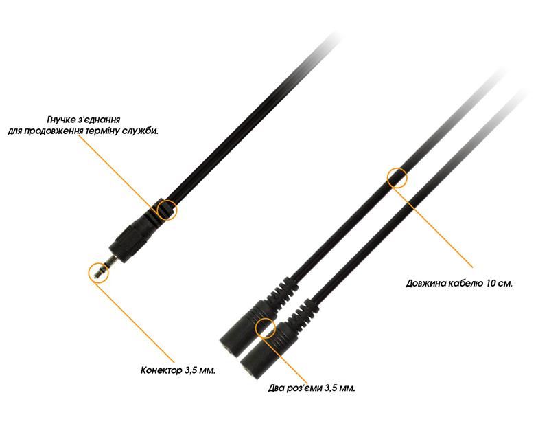 Роз'єми: стерео 3.5 мм («тато») — 2 х 3.5 мм («мама»)