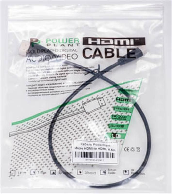 Відео кабель PowerPlant HDMI - micro HDMI, 0.5m. позолочені коннектори, v 1.3