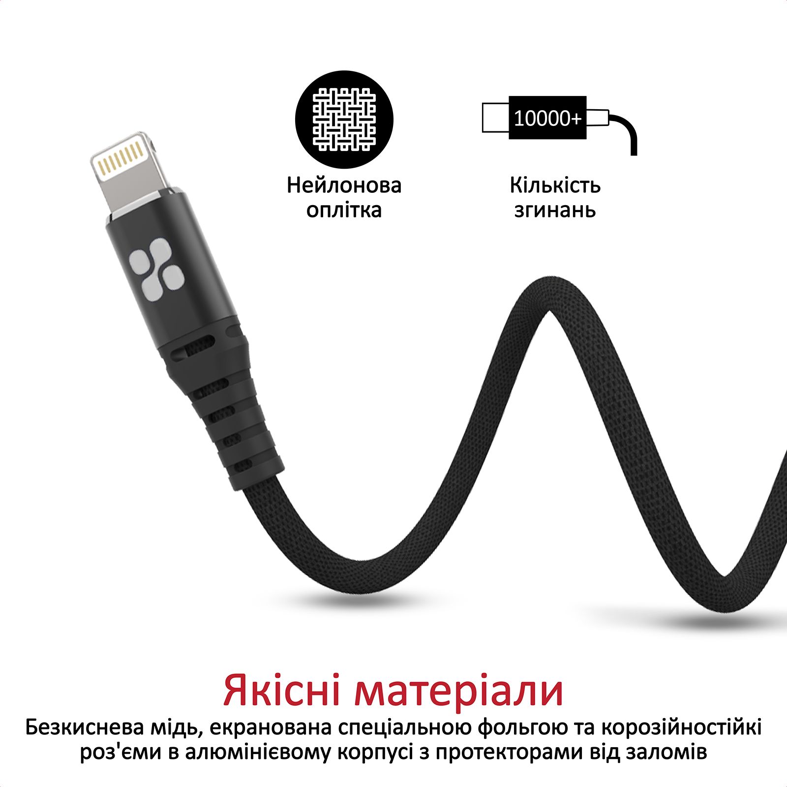 Кабель Promate USB - Lightning (M/M), 2.4 A, 1.2 м, NerveLink-i Black (nervelink-i.black)