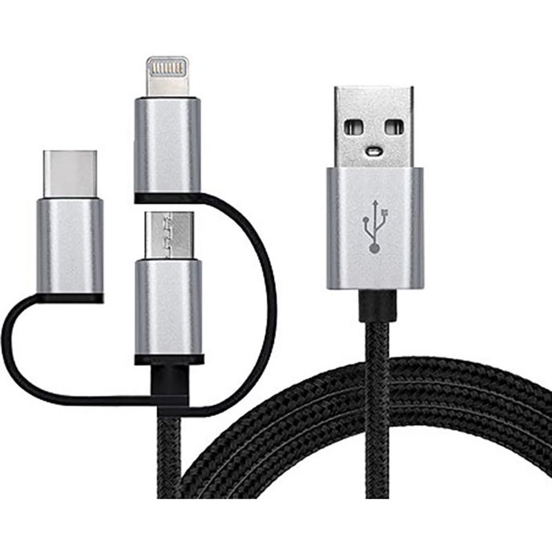 Кабель REAL-EL Premium 3in1 USB - Lightning + micro USB + USB Type-C (M/M), 1 м, чорний (EL123500035)