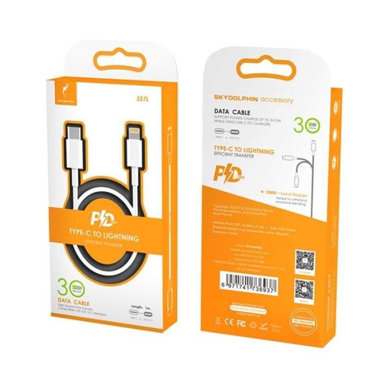 Кабель SkyDolphin S57L USB Type-C - Lightning (M/M), PD 18 W, 1 м, White (USB-000545)