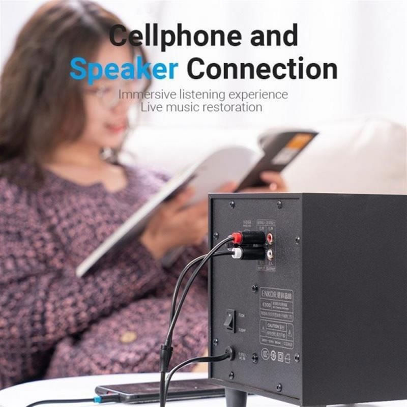 Для iPhone iPod iPad, музичного плеєра MP3, смартфона, планшета Android або настільного ПК із загальним 3,5-мм аудіопортом та телевізором, AV-ресивером, підсилювачем, проектором, радіо, автомобільною аудіосистемою, стереосистемою, Hi-Fi аудіо, комп’ютерним звуком записуючим обладнанням, динамік з вилками 2RCA..