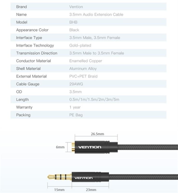 Кабель Vention Audio 3.5 mm M - 3.5 mm F призначений для передачі аналогових стереозвукових сигналів між аудіо, аудіо-відео і (чи) комп'ютерними пристроями або їх компонентами. Ви можете підключити комп'ютер (ноутбук), MP3-плеєр, або смартфон до гарнітури, активних акустичних систем і іншої мультимедійної техніки.