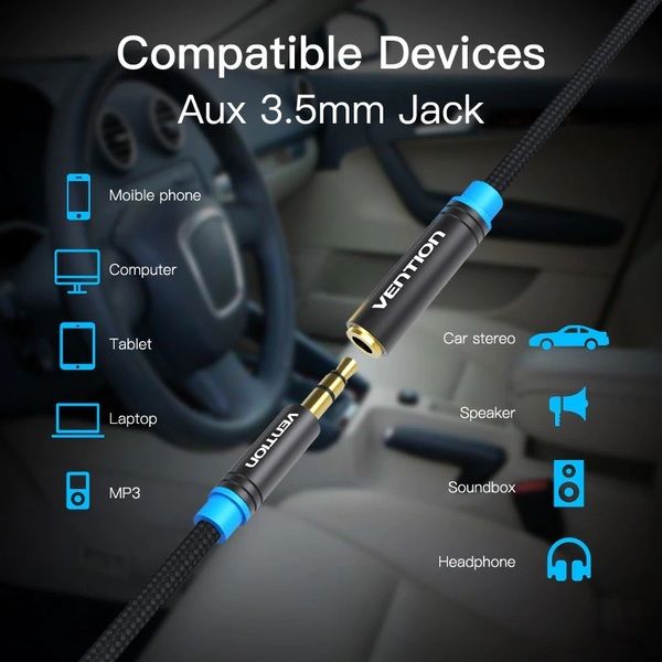 Кабель Vention Audio 3.5 mm M - 3.5 mm F призначений для передачі аналогових стереозвуковых сигналів між аудіо, аудіо-відео і (чи) комп"ютерними пристроями або їх компонентами.