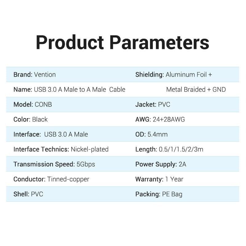 Кабель Vention USB - USB V 3.0 (M/M), 0.5 м, Black (CONBD)