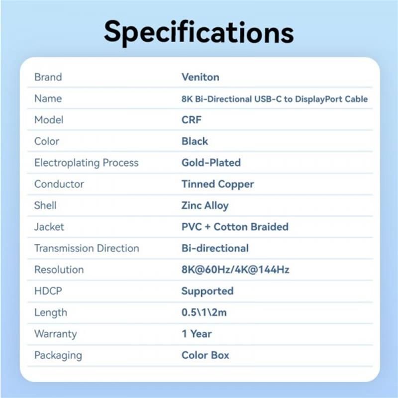 Особливості кабелю Type-C to DisplayPort 1.4 Vention High Definition: