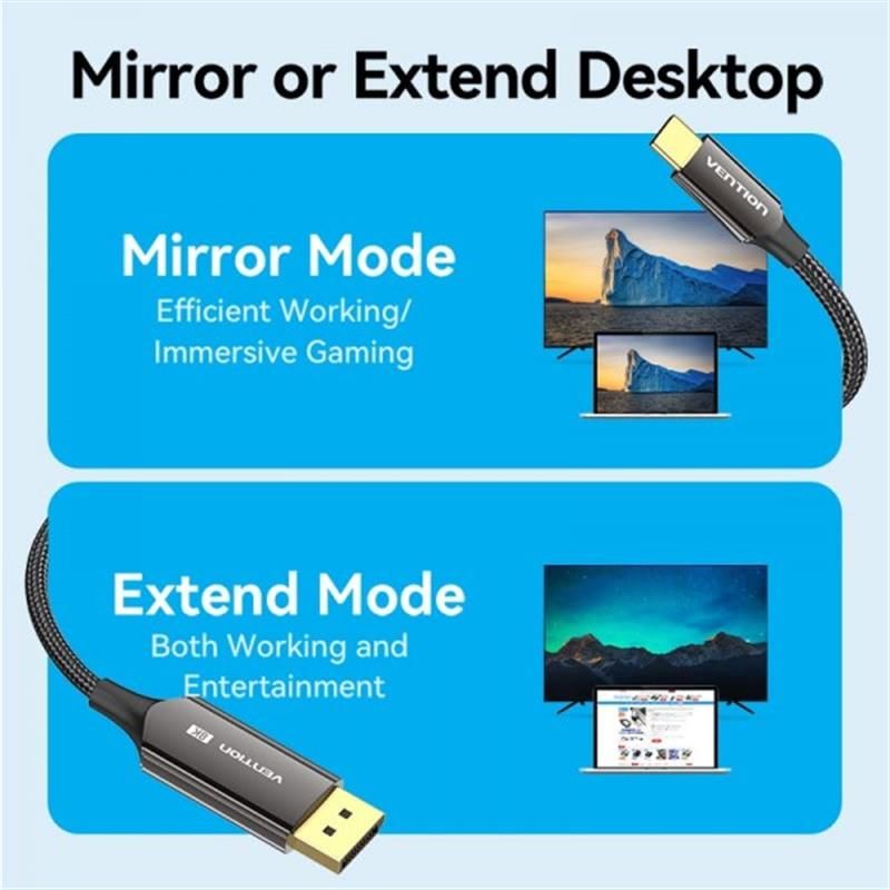 Зворотна сумісність із DP 1.3, DP 1.2, DP 1.1: Підтримує режим подвійного дзеркального відображення екрана, синхронізує зображення з іншим дисплеєм.