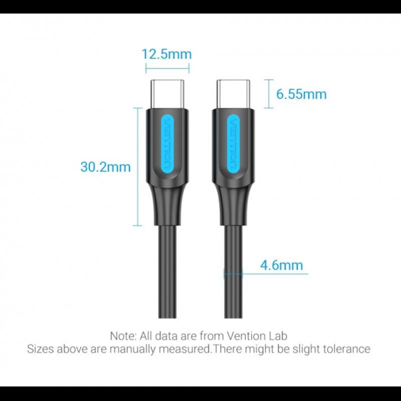 Кабель Vention USB Type-C - USB Type-C (M/M) TPE Round PD 100W, 5A, 0.5 м, Black (COTBD)