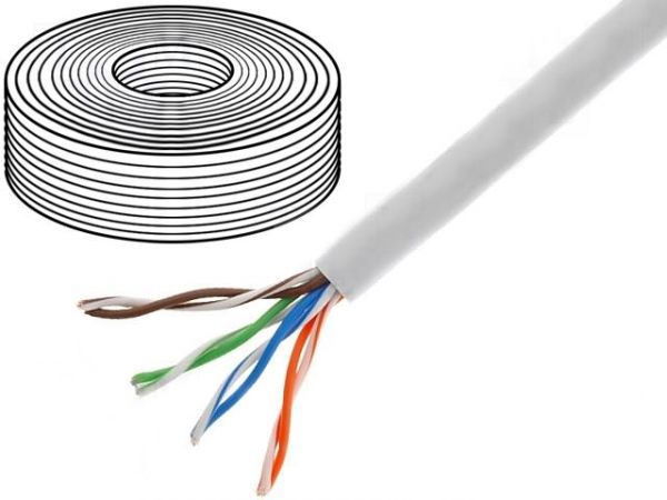 Вита пара Atcom Premium UTP Lan cable CAT5E (UTP 0,5mm CU за бухту 305 м) неекранована вита пара (англ. UTP - Unshielded twisted pair) - без захисного екрану; CAT5e (смуга частот 125 МГц) - 4-парний кабель, вдосконалена категорія 5. Швидкість передач даних до 100 Мбіт / с при використанні 2 пар і до 1000 Мбіт / с при використанні 4 пар. Кабель категорії 5e є найпоширенішим і використовується для побудови комп"ютерних мереж. Іноді зустрічається двопарний кабель категорії 5e. Кабель забезпечує швидкість передач даних до 100 Мбіт / с. Переваги даного кабелю в нижчій собівартості і меншою товщиною.Товщина ізоляції провідника - близько 0,2 мм, матеріал зазвичай полівінілхлорид (англійське скорочення PVC), для більш якісних зразків 5 категорії - поліпропілен (PP), поліетилен (PE).