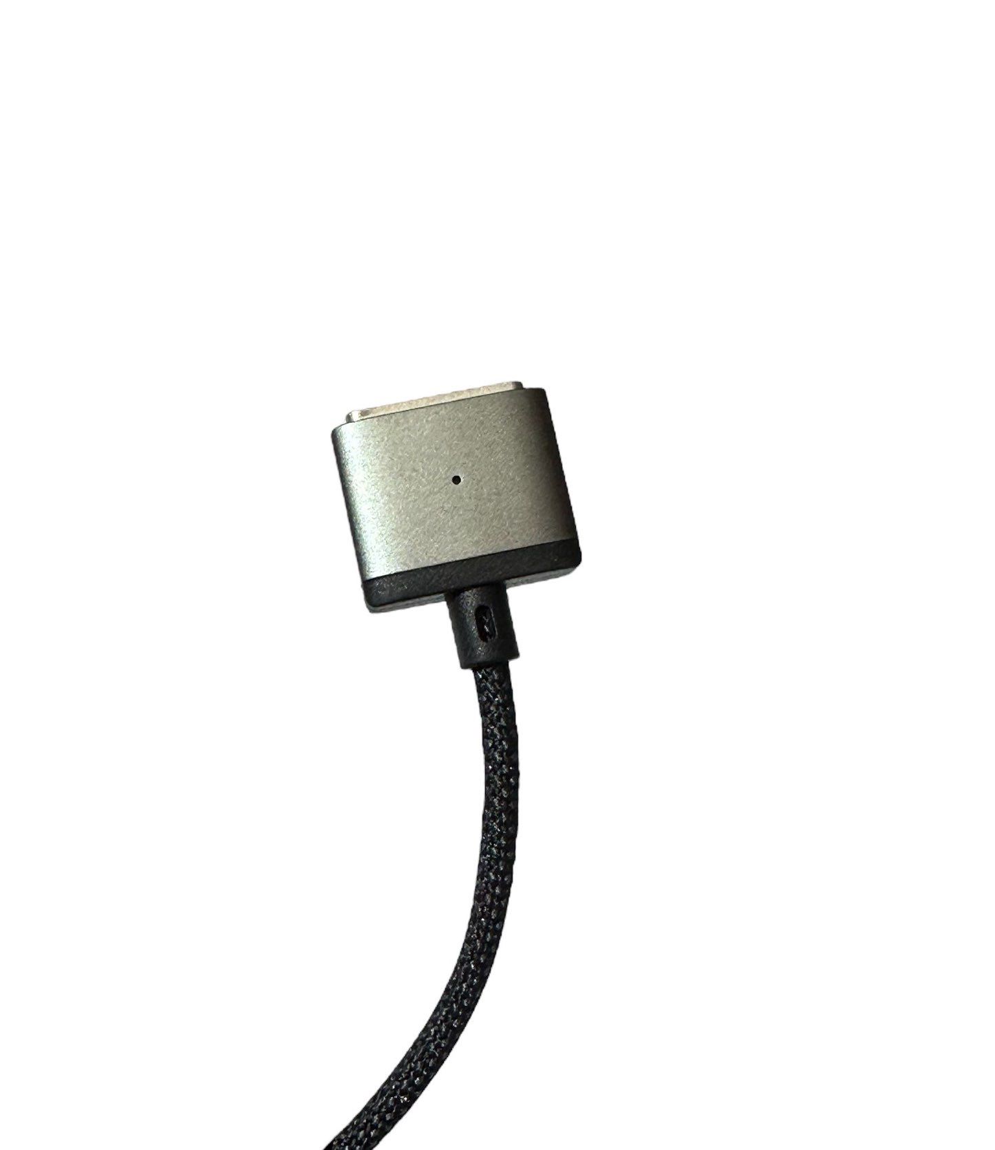 Кабель примагнічується досить міцно і не від’єднується, коли його випадково торкаються. Але якщо хтось зачепиться за нього, кабель легко вискочить із роз’єму і не потягне ваш MacBook Pro за собою. Під час заряджання світлодіодний індикатор світиться оранжевим, а після його завершення стає зеленим. Він виготовлений із плетеного текстилю, тому характеризується тривалим терміном експлуатації.