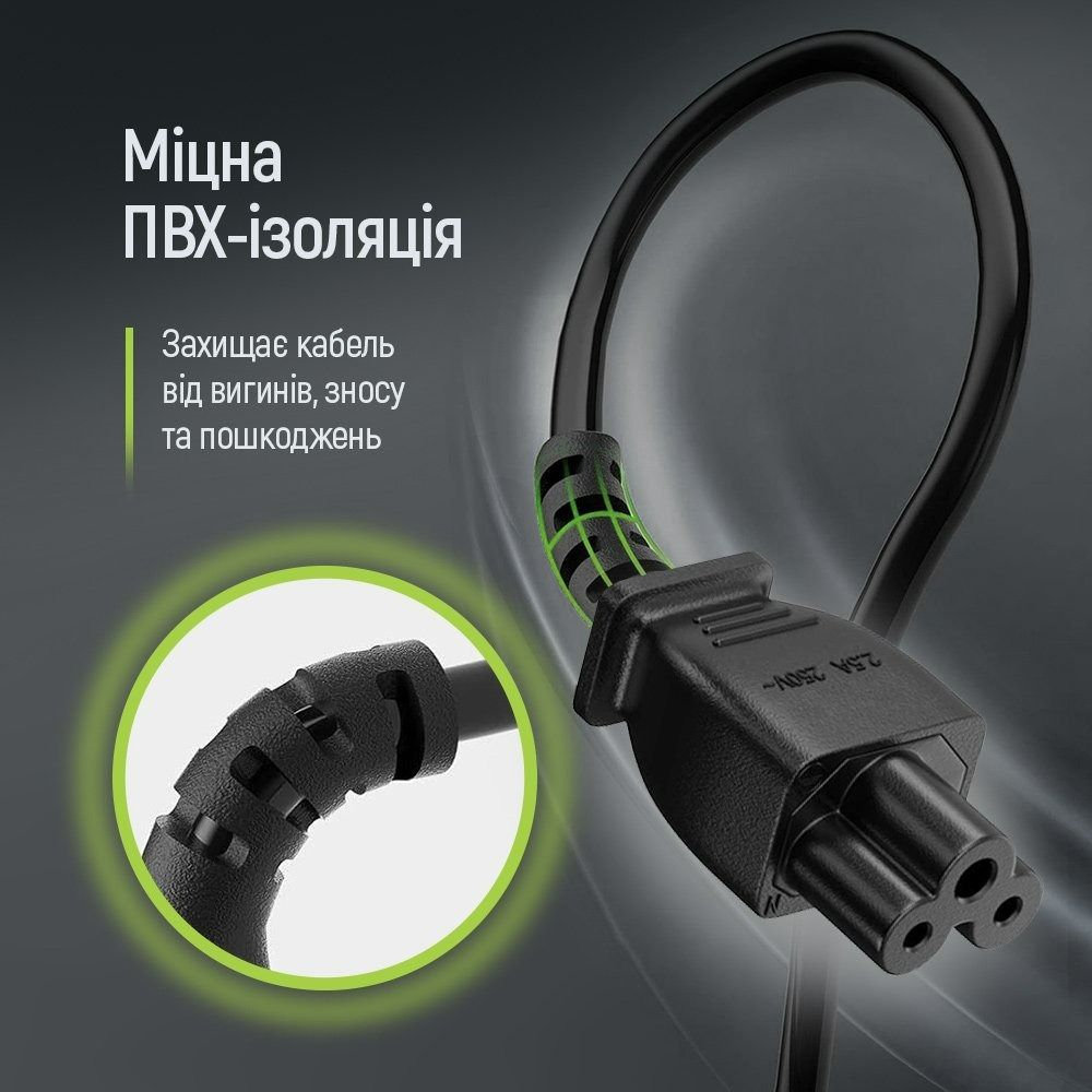 Надійний кабель живлення ColorWay призначений для підключення ноутбуків, зарядних пристроїв та іншої техніки з роз’ємом C5 (типу "Міккі Маус") до стандартних європейських розеток. Підходить для використання в побутових та офісних умовах, забезпечуючи стабільне живлення пристроїв.