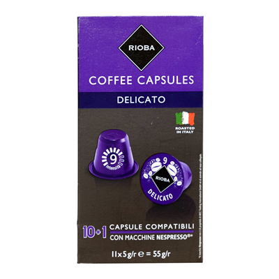 Кава Rioba смажена мелена в капсулах 100% арабіка. Упаковано в захисному середовищі. Сумісний з машинами Nespresso.
