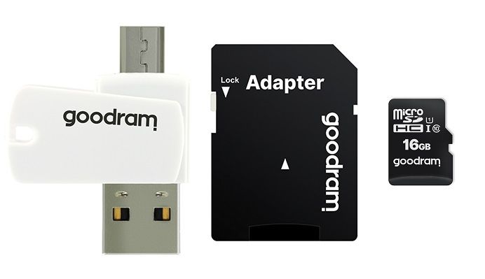 Карта пам`ятi MicroSDHC 16GB UHS-I Class 10 GOODRAM + SD-adapter + OTG Card reader (M1A4-0160R12)