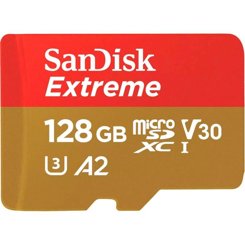 Карта пам`ятi MicroSDXC 128GB UHS-I U3 R190/W90MB/s SanDisk Extreme V30 + SD-адаптер (SDSQXAA-128G-GN6AA)