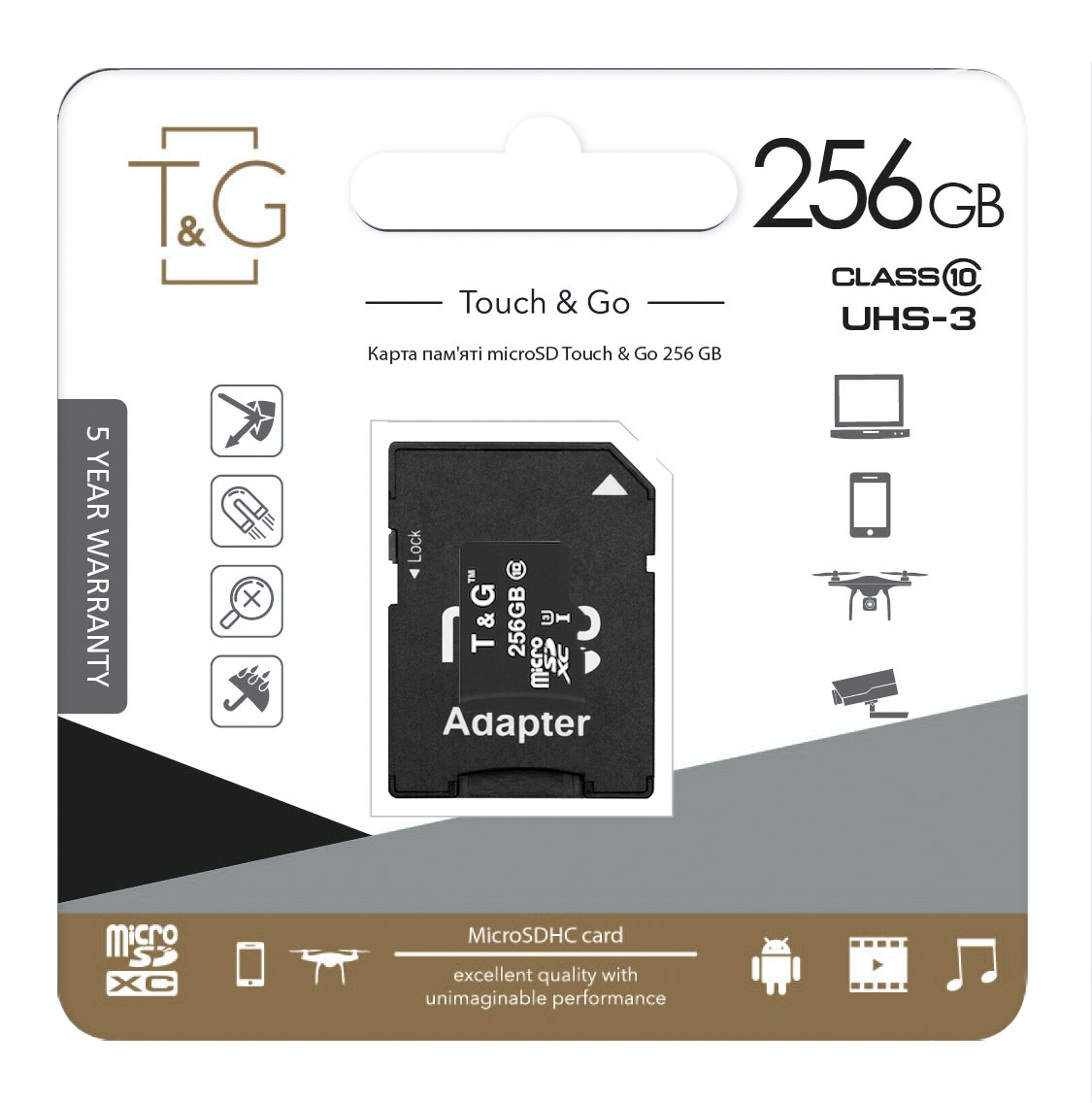Карта пам`ятi MicroSDXC 256GB UHS-I U3 Class 10 T&G + SD-adapter (TG-256GBSD10U3-01)