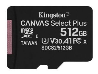 Карта пам`яті MicroSDXC 512GB UHS-I/U3 Class 10 Kingston Canvas Select Plus R100/W85MB/s (SDCS2/512GBSP)