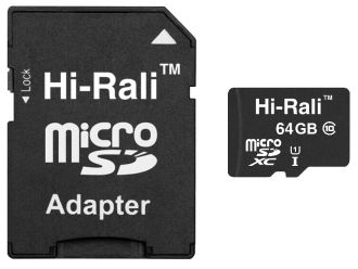 Карта пам"яті HI-RALI micro SDXC (UHS-1) 64GB class 10Mb/s (з адаптером). Сумісна з усіма пристроями читання і запису флеш-карт стандарту microSDXC, такими як мобільні телефони, комунікатори, MP3-плеєра і т.п.
