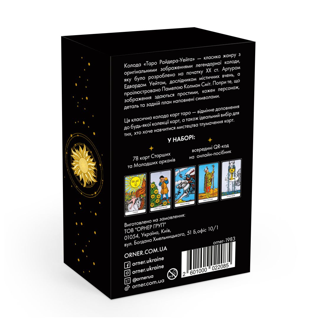 Карти «Таро Райдера-Уейта» — легендарна колода, яка вже давно стала класичною. Її дизайн — найпопулярніший у світі, а її творці — відомі окультисти, члени давнього ордену, присвяченого таємним вченням. А тепер «Таро Райдера-Уейта» можна придбати рідною, українською мовою.