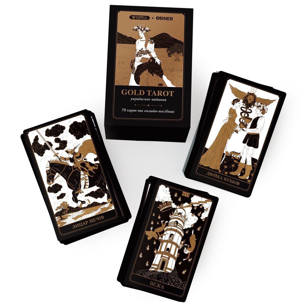 «Золота колода» — про ворожіння із особливим вайбом. Вона виконана у чорно-золотих тонах, проте її символічна основа збережена максимально наближеною до оригінала.