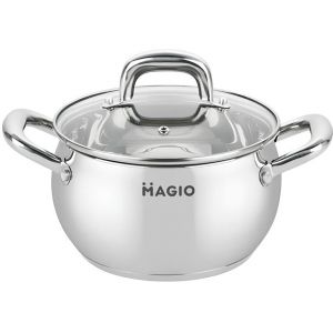 Каструля Magio - це надійний кухонний помічник, виготовлений із високоякісної нержавіючої сталі, що забезпечує довговічність та стійкість до корозії.