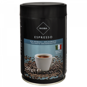 Rioba мелений 60% АРАБІКА 40% РОБУСТА - це поєднання високої якості і благородного смаку, яке не залишить байдужим жодного гурмана. Чудовий купаж, що складається на 60% із мелених зерен добірної арабіки і на 40% - з кращих плодів робусти, вразить дегустатора своїм багатогранним смаковим букетом і неповторним ароматом, в якому простежуються відтінки цитрусових, шоколаду і ванілі. Тривалиц і насичениц післясмак поставить логічну крапку в дегустації одного з найкращих продуктів кавовій промисловості, яким, поза всяким сумнівом, є ця кава. Rioba мелений не можна назвати дорогим напоєм, тому дозволити собі придбати порцію цього елітного продукту може кожен кофеман. Приготований напій буде дуже смачний як в поєднанні з популярними добавками до напоїв, тобто молоком і цукром, так і в чистому вигляді.