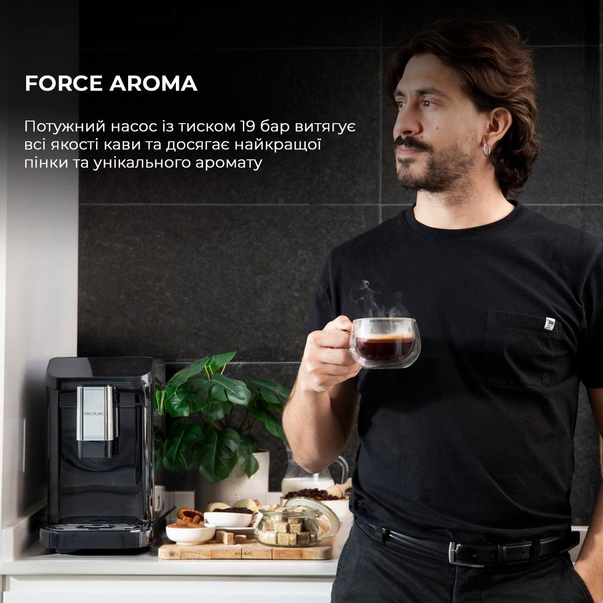 Потужний насос кавомашини CECOTEC під тиском 19 бар витягує всі найкращі якості кави та забезпечує кращу пінку та унікальний аромат.