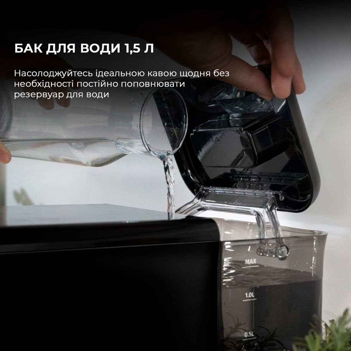 Насолоджуйтесь ідеальною кавою щодня без необхідності постійно доливати воду за допомогою резервуару для води об’ємом 1,5 л.