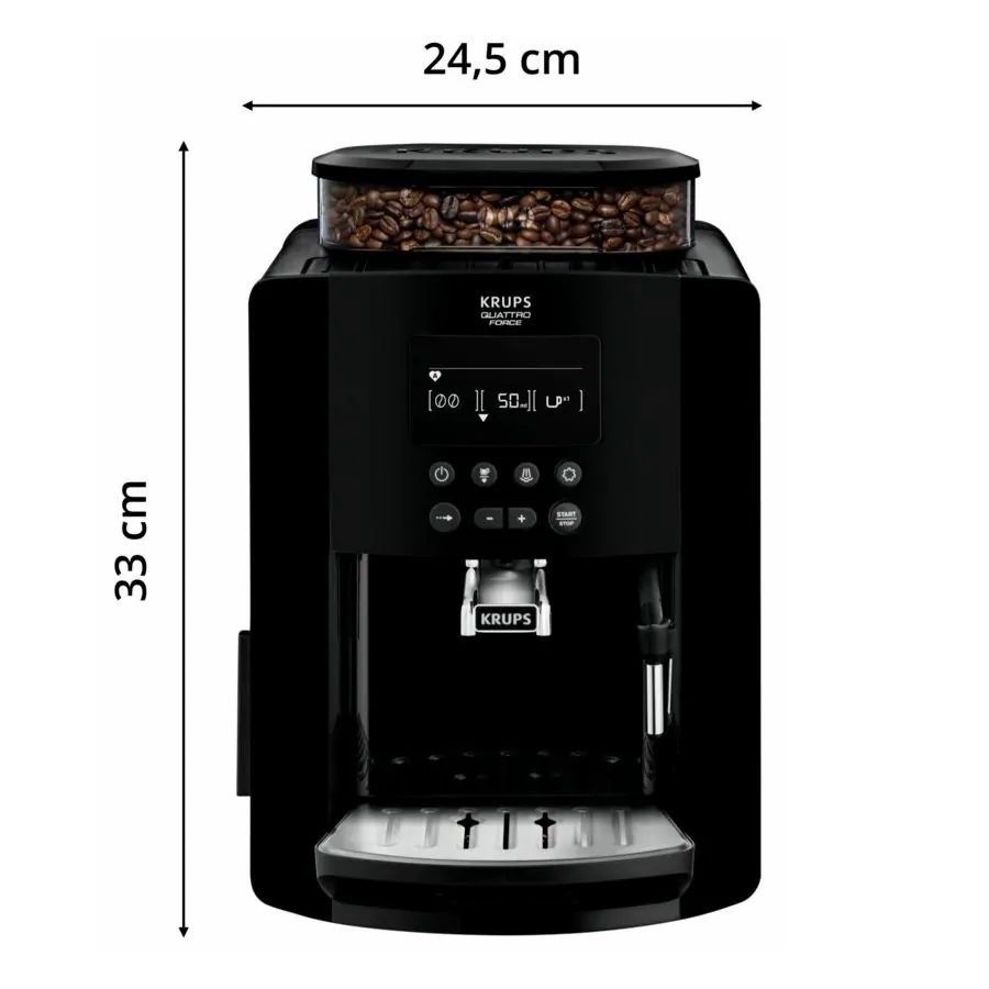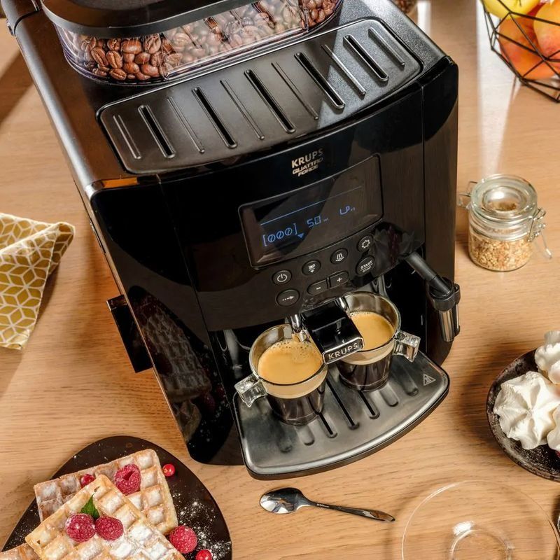 KRUPS Arabica – це компактна автоматична кавомашина з безкомпромісними стандартами якості, створена для приготуванняриготовления кави та еспресо з найбільш чистим та насиченим смаком. Насолоджуйтесь еспресо та молочними кавовими напоями в домашніх умовах та насолоджуйтесь всіма зручностями компактної конструкції без жодних компромісів з місткістю. Система Quattro Force забезпечує видатні результати, що розкриваються чудовим смаком і ароматом кави, вмістивши повний набір необхідних функцій в одній простій та компактній кавомашині. Інтуїтивно зрозумілий великий LCD-дисплей забезпечує легке управління кавомашиною, пропонуючи нам 3 рівня температури та 3 ступені помолу для налаштування напоїв. Завдяки зручному режиму запису ваших улюблених рецептів, KRUPS Arabica день за днем готуватиме ваш улюблений напій саме так як вам подобається.