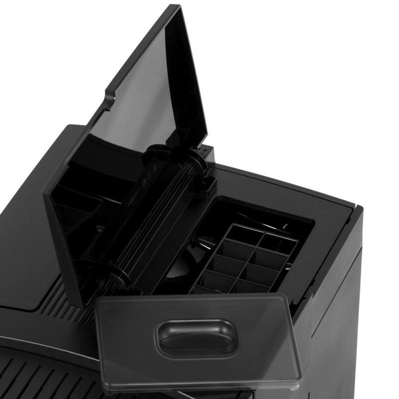 Зерна містяться в герметичний контейнер, розрахований на 250 грам. Перед заварюванням вони подаються на вбудований млин із конічними жорнами із загартованої сталі, ступінь помелу якої задається трьома рівнями.
