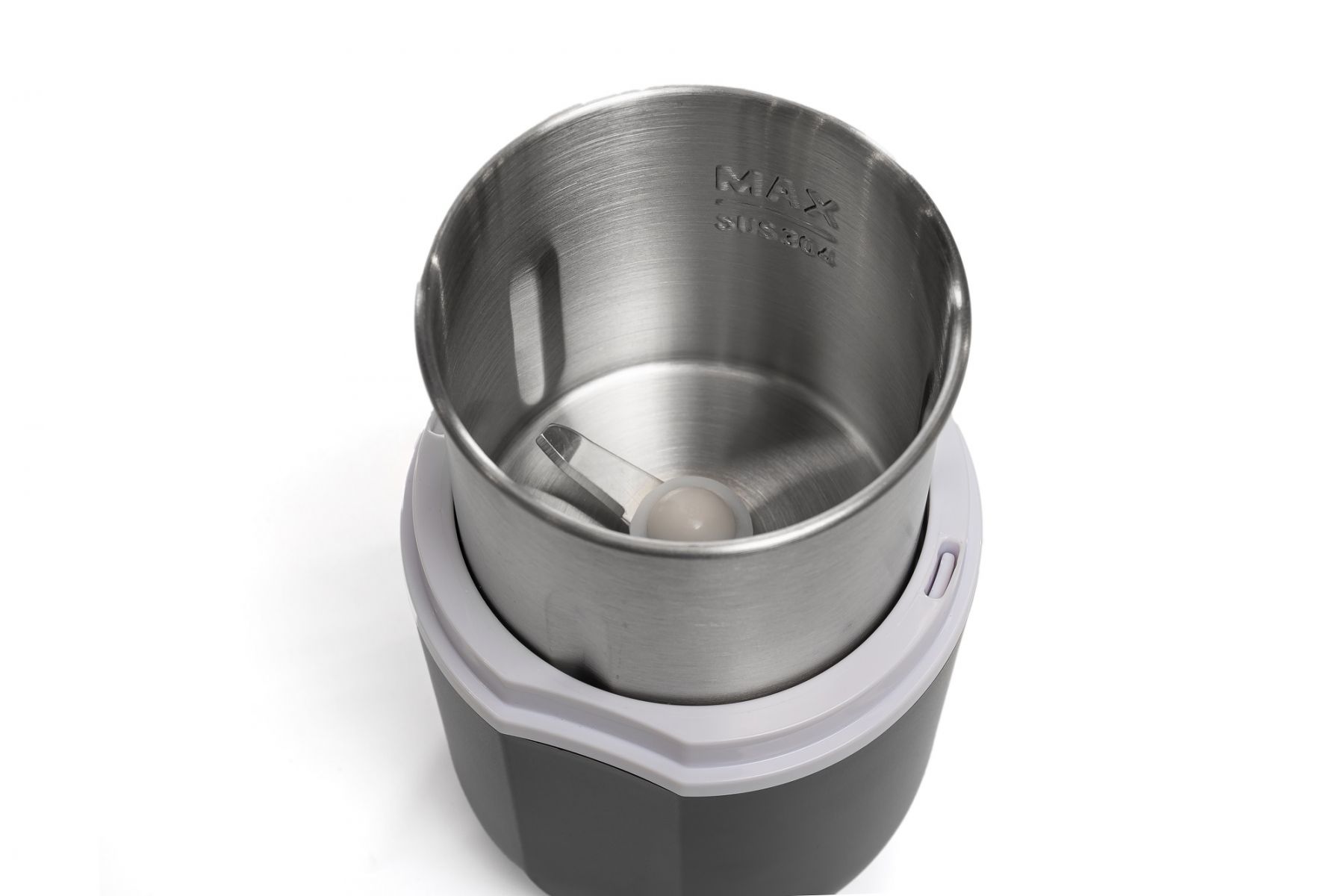 Кавомолка має леза з нержавіючої сталі, які забезпечують рівномірне подрібнення кави та спецій. Це дозволяє вам приготувати ароматний напій з насиченим смаком або додати пряного смаку улюбленим стравам.