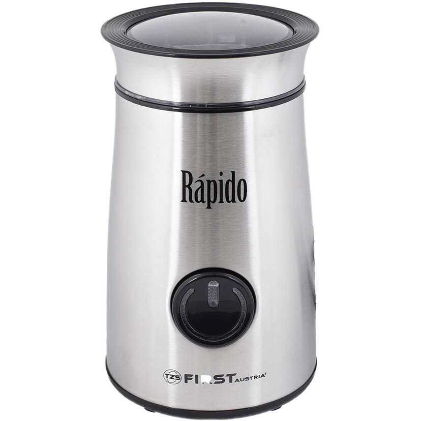 Кавомолка First FA 5485-3 складається з корпусу з електромотором і невеликої чаші для зерен кави. З метою безпеки кавомолка працює тільки при закритій кришці. На верхній частині кришки є прозоре оглядове віконце. У чаші знаходиться дволопастний ротаційний ніж, виготовлений з високоміцної нержавіючої сталі. Засипаються зерна "на око". Максимальний обсяг помолу зерен - 50г. Даної кількості достатньо, щоб приготувати 5-7 порцій еспресо. На нижній частині кавомолки знаходяться прогумовані ніжки і відсік для намотування мережевого шнура. Ніжки забезпечують стійке положення приладу на гладкій поверхні столу або стільниці.