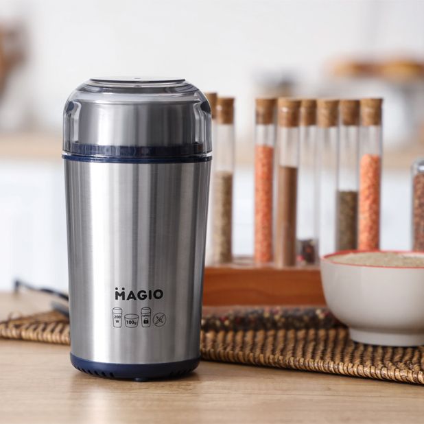 Чарівний аромат свіжої кави, дурманливий запах щойно перемелених спецій, казковий смак гарячого какао, самостійно приготованого з обсмажених какао-бобів та багато іншого тепер можливо за допомогою мультимолки MG-193 з чотирилопатевими ножами з нержавіючої сталі.