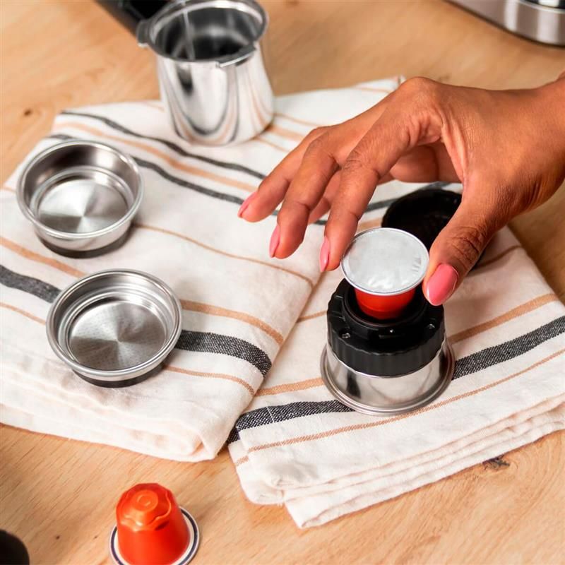 Включає фільтр виготовлення алюмінієвих капсул. Помістіть цей фільтр у тримач фільтра та насолоджуйтесь улюбленою кавою.