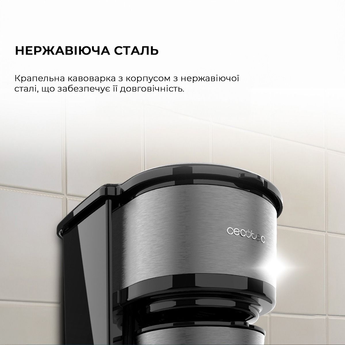Крапельна кавоварка від Cecotec подарує аромат свіжозвареної кави за лічені хвилини. Компактні розміри кавоварки підійдуть навіть для невеликих кухонь. Портативний термос зручно брати з собою, коли поспішаєш. Інтуїтивне управління дозволить приготувати ароматну каву всього в один клік.
