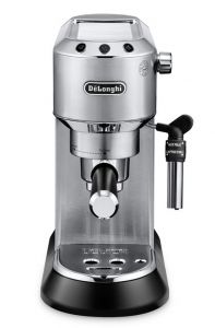 У вас маленька кухня і ви шукаєте компактну кавоварку, або ви просто в пошуку невеликого і якісного пристрою для приготування ароматного напою? Вашій увазі пропонуємо кавоварку, ширина корпусу якої всього 15 см - DeLonghi EC 685 M. На сьогоднішній день це одна з найбільш вузьких кавоварок. Її сучасний зовнішній вигляд, поєднання кольору металік і хромованих деталей не залишать байдужим нікого.