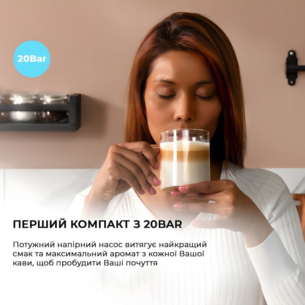 Потужний нагнітальний насос максимально ароматизує кожну чашку кави, щоб збудити ваші почуття.