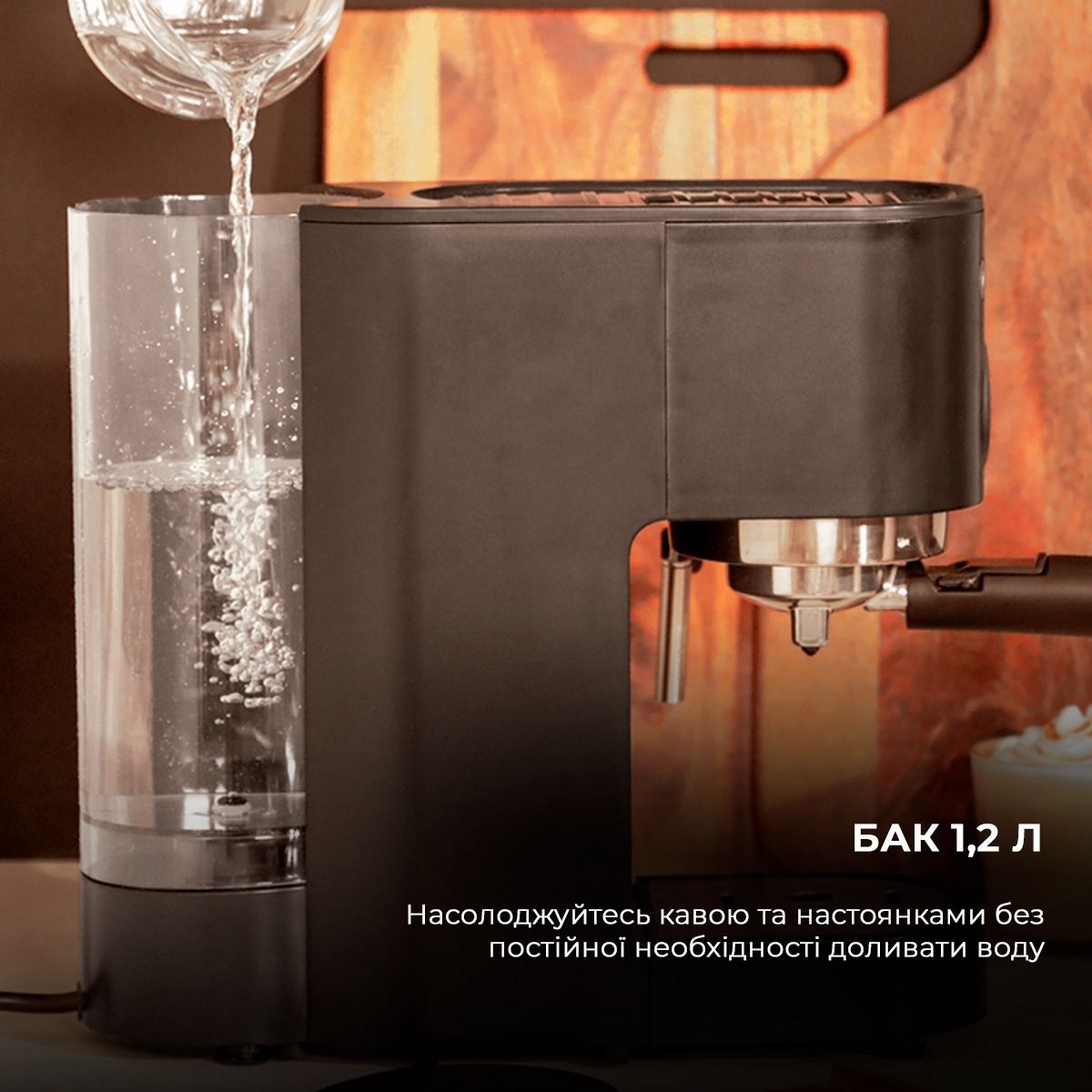 Знімний резервуар можна запросто зняти та очистити, а досить великий об’єм в 1.2л запросто забезпечить Вас найкращою та ароматною кавою.