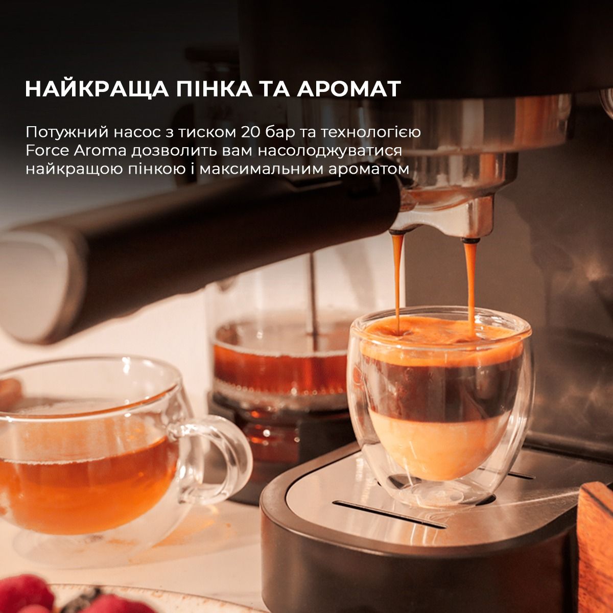Потужний напірний насос із тиском 20 бар. дозволяє швидко та якісно приготувати каву, а за допомогою технології Force Aroma дозволяє відчути абсолютно новий смак та аромат Вашої кави.