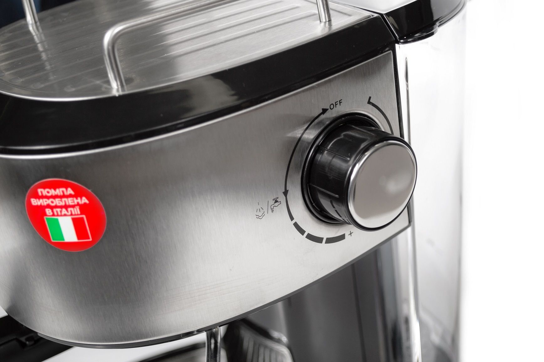 Тиск помпи становить 15 бар - це найоптимальніший тиск для помпи. І правильне по відношенню, до тиску який необхідно, щоб проходило через холдер (ріжок) для приготування смачного еспресо з щільною пінкою і без присмаку підгорілого кави.