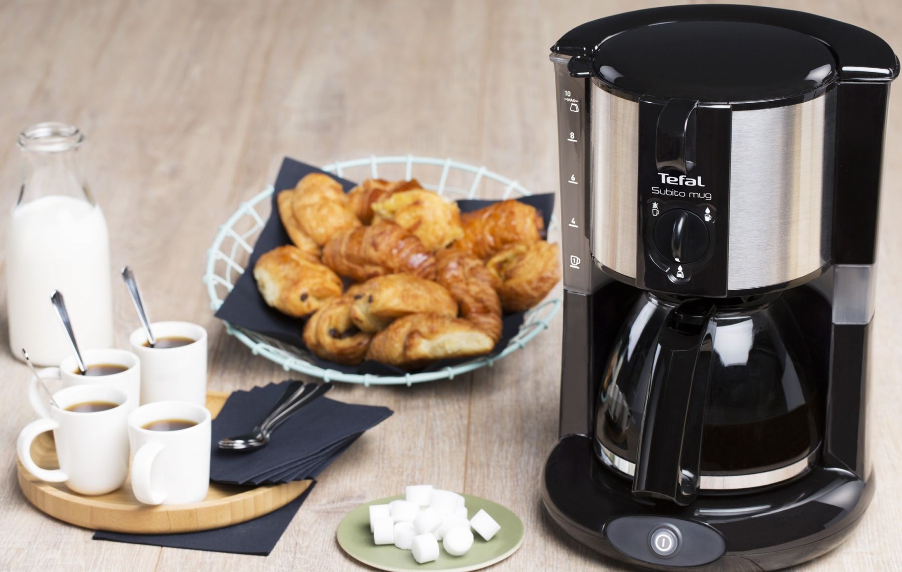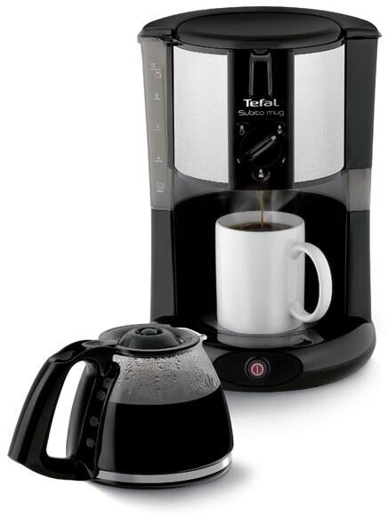 Крапельна кавоварка SUBITO MUG CM290838 від компанії Tefal потужністю 1000 Вт оснащується резервуаром для води ємністю 1.25 л. Прилад обладнаний знімним багаторазовим фільтром - вам не доведеться користуватися паперовими фільтрами для кави, а також протикрапельною системою.