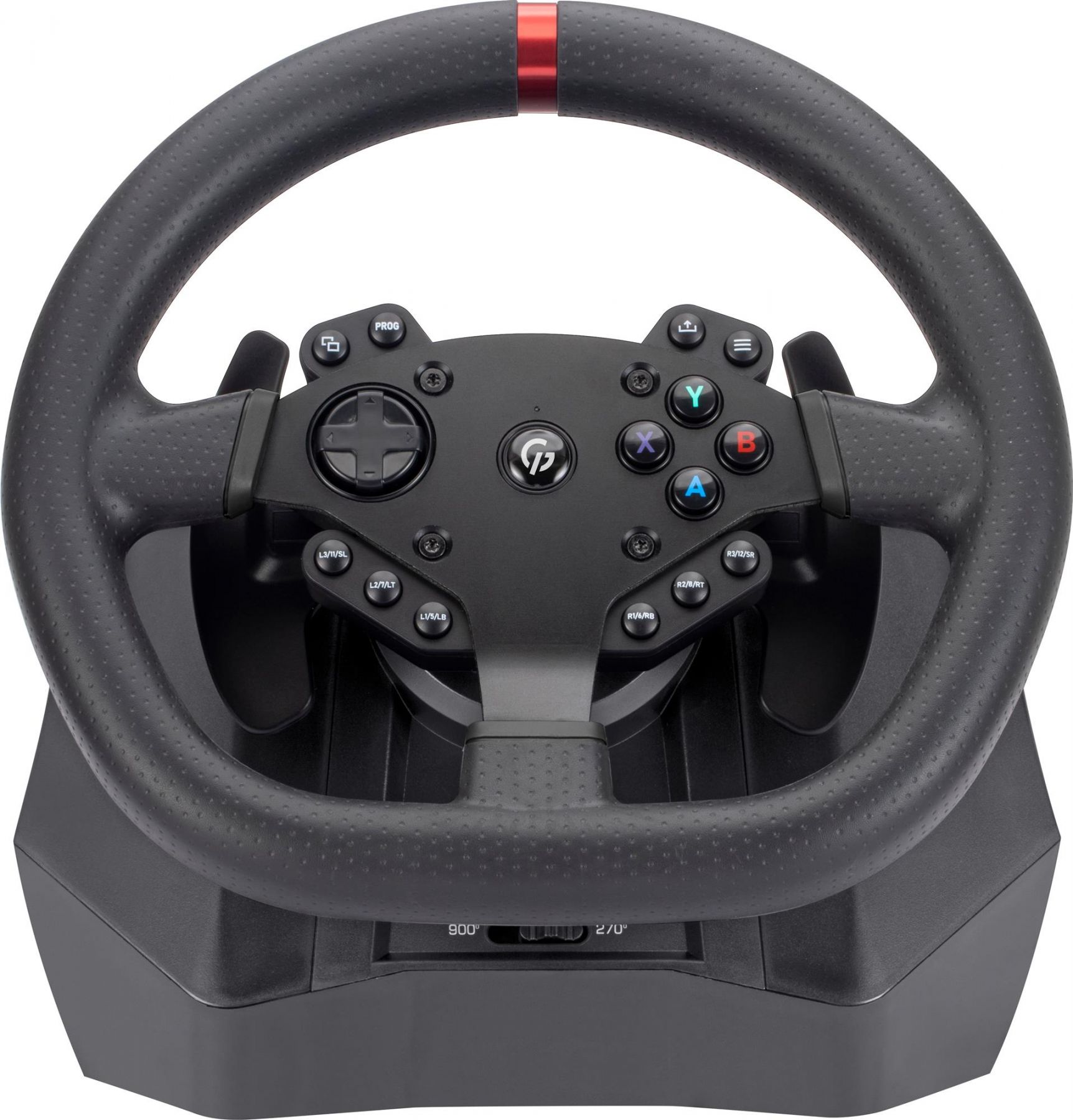 GamePro RW575PM - це універсальне ігрове кермо діаметром 270 мм стане вашим найкращим помічником у віртуальних перегонах. Воно пропонує гнучкий кут повороту 270° для аркадних гонок або 900° для реалістичних симуляторів. Завдяки двом потужним вібродвигунам, ви відчуєте кожну нерівність траси та боротьбу за зчеплення. Ергономічні гумові накладки забезпечують міцний хват та комфорт навіть під час тривалих ігрових сесій. До комплекту постачання входить блок педалей "газ", "гальмо", "зчеплення" а також окремий ричаг механічної коробки передач. Шість надійних вакуумних фіксаторів надійно утримують кермо на поверхні столу, запобігаючи ковзанню. Функція переналаштування кнопок дозволяє досягнути ідеального керування під ваш стиль гри. Кермо підтримує всі популярні платформи, включаючи PC, PS4, XBOX ONE та Nintendo Switch. GamePro RW575PM - це готове рішення для повного занурення у світ автоспорту за доступною ціною.