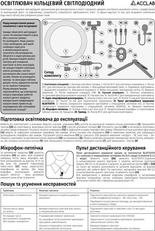 Кільцева USB LED-лампа ACCLAB Ring of Light AL-LR101MB + мікрофон і Bluetooth керування (1283126502057)