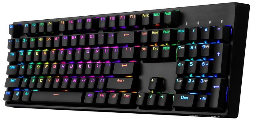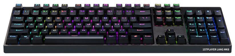 1stPlayer MK8 Titan — механічна геймерська клавіатура, оснащена ергономічним дизайном та різнобарвною RGB підсвіткою яка має більше ніж 10 режимів освітлення. Великі клавіші клавіатури оснащені змінними перемикачами, які сумісні з основними перемикачами на ринку. Високоякісний механічний перемикач забезпечує комфортне натискання клавіш при кожному використанні.