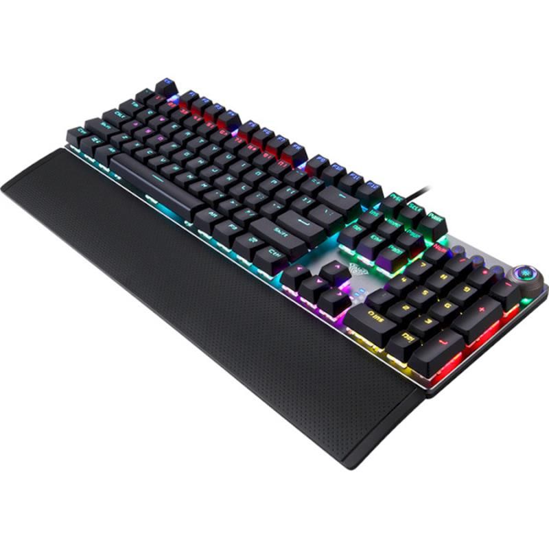 Панель клавіатури комп’ютера виготовлена з високоякісного алюмінієвого сплаву з матовою текстурою, досить міцна і надійна, щоб захистити її від подряпин. Ергономічна підставка для долонь з ABS забезпечує надійну підтримку, яка зменшує тиск на зап’ястя під час гри під підвищеним кутом. Поверхня має гладкий і комфортний дотик, що покращує відчуття від роботи з клавіатурою. USB-роз’єм для надійного з’єднання та максимальної ігрової продуктивності.
