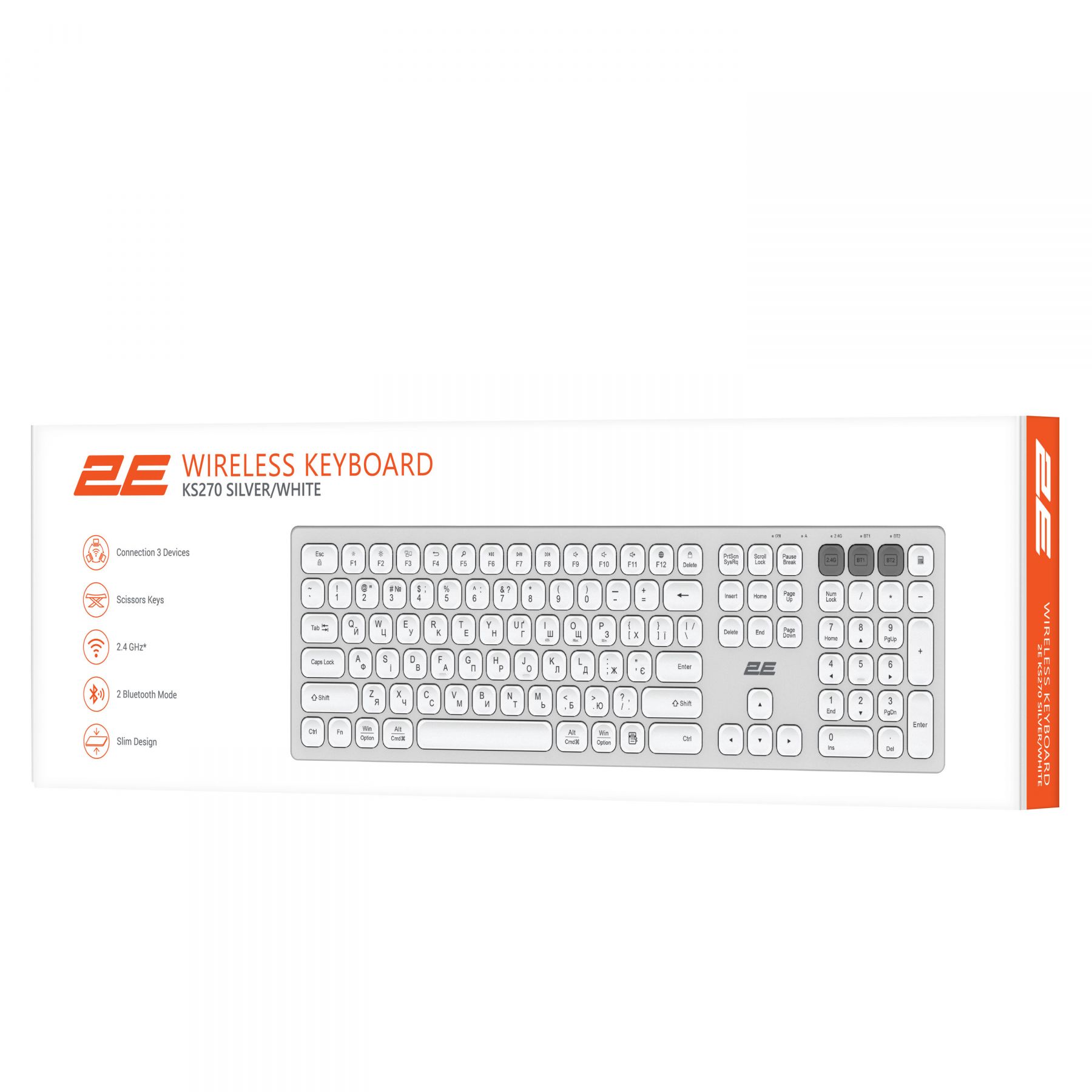 Клавіатура бездротова 2E KS270 WL/BT EN/UKR Silver/White (2E-KS270WBWH_UA)