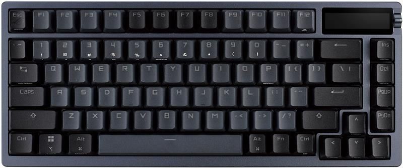 Геймерська клавіатура ROG Azoth: можливість персоналізації, формфактор 75%, пружна прокладка у кріпленні верхньої металевої пластини, три демпфувальних шари, попередньо змащені механічні перемикачі ROG NX з можливістю гарячої заміни, стабілізатори клавіш, двокомпонентні PBT-ковпачки, набір для змащування, три режими підключення, технологія SpeedNova у режимі 2,4 ГГц, OLED-дисплей, 3-позиційний регулятор, три кути нахилу, підтримка Mac.