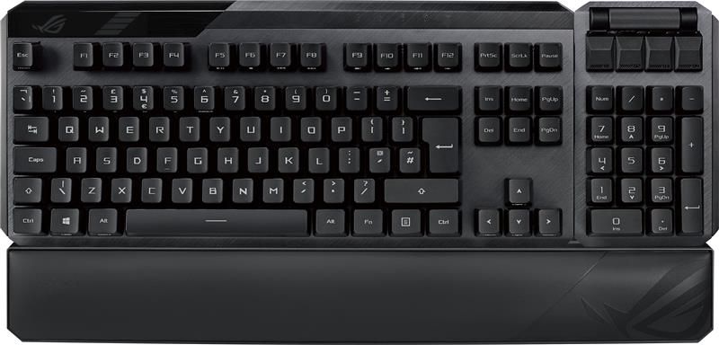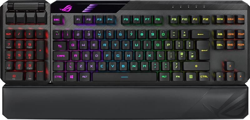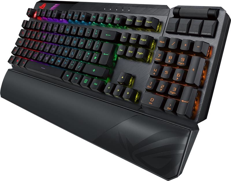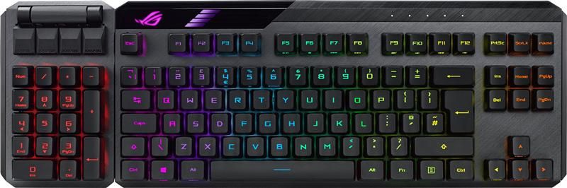 Модульна ігрова клавіатура ROG Claymore II з оптико-механічними перемикачами ROG RX – це функціонально насичений пристрій елітного рівня, який гнучко налаштовується під конкретну ігрову систему. Вона володіє знімним цифровим блоком, який кріпиться до основного блоку з будь-якого боку, підключається за допомогою кабелю або бездротового з’єднання, тішить погляд барвистим підсвічуванням Aura з можливістю синхронізації та пропонує програмовані гарячі клавіші.